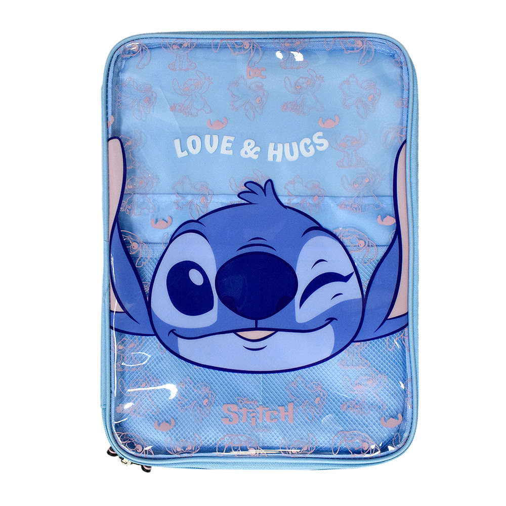 Com uma capa temática em PVC cristal, decorada com detalhes do personagem, essa pasta é perfeita para os fãs do adorável Stitch.